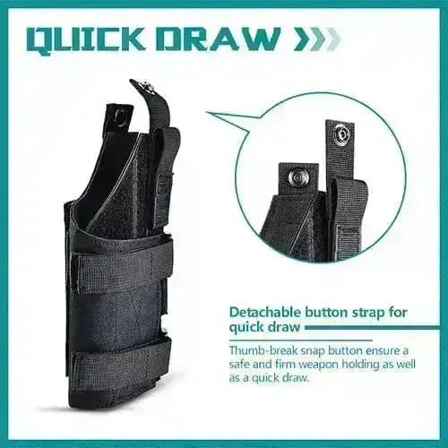 Fits almost all pistols, including Glock, Beretta, Sig Sauer and many more. The holster has a regular button to lock the pistol in place.