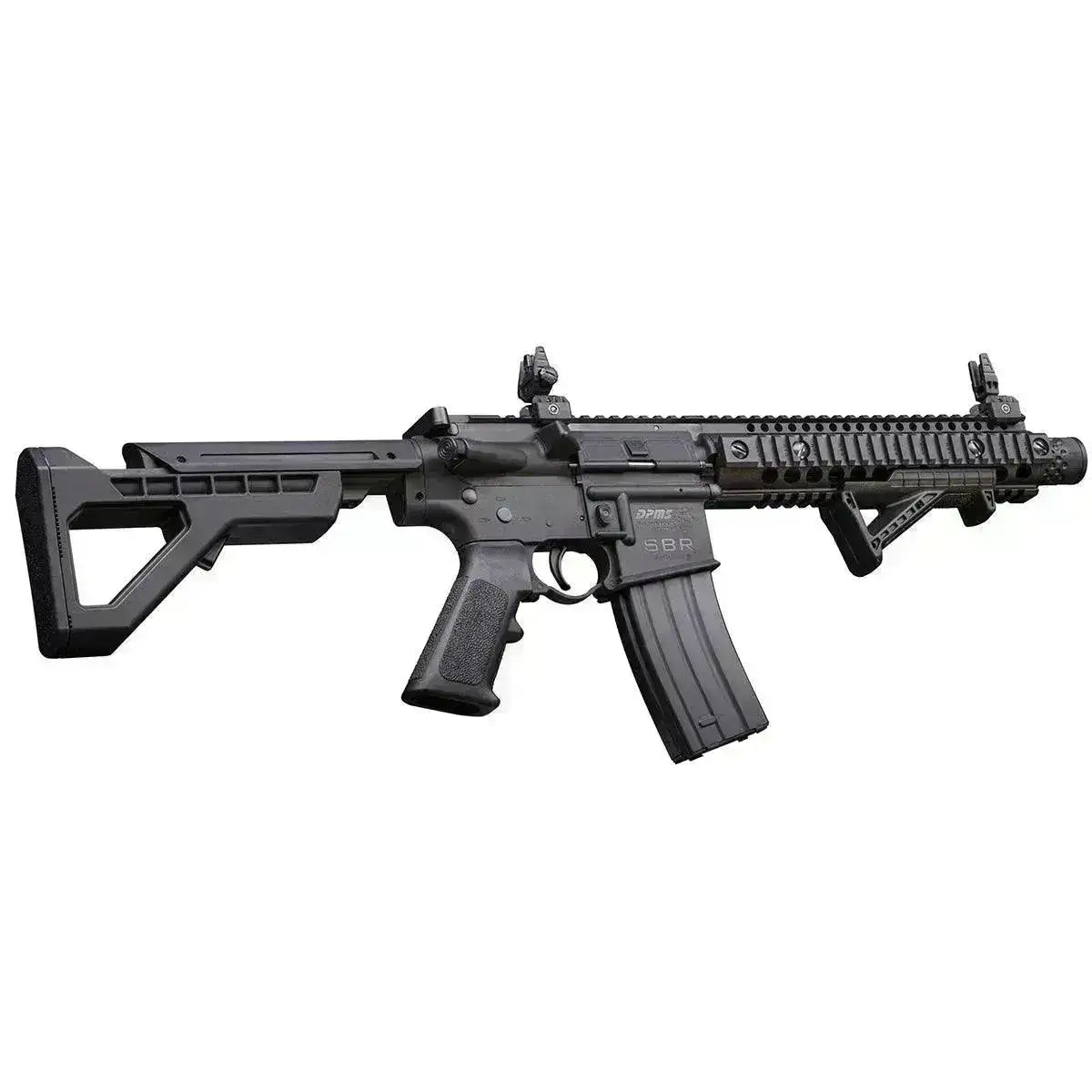 From Crosman comes the fully licensed and branded DPMS SBR (Short Barrel Rifle). It spits out powerful semi and full-auto 4.5mm BB shots! It doesn't get more fun than that! If you're looking for an airgun with realistic looks, weight and function, then this is the badass rifle from Crosman to have!