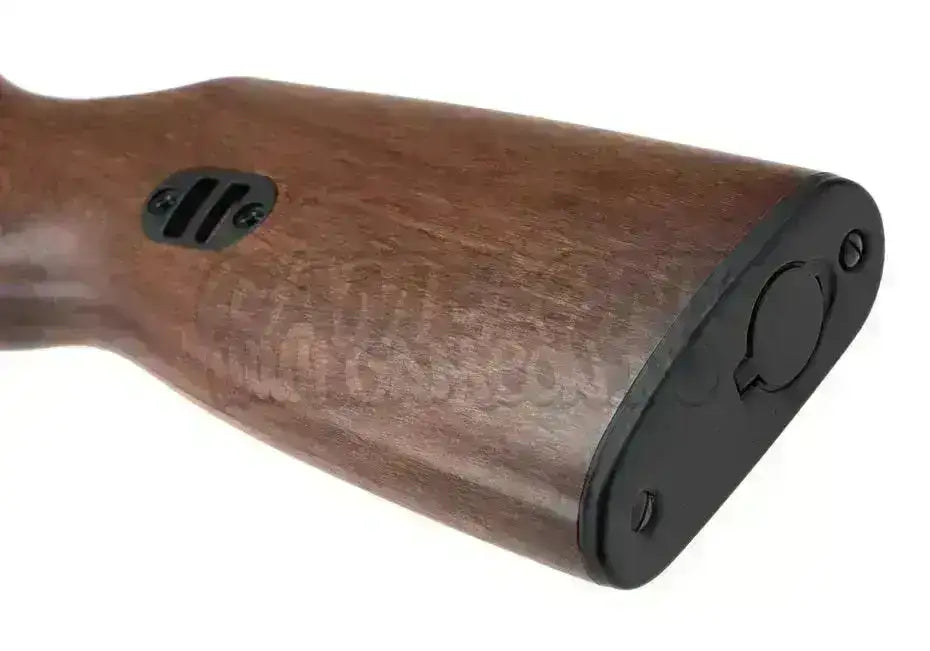 This historic Russian SMG rifle saw the light of day in 1940 and was nicknamed "papasha" - which means father. The SMG rifle was known for having an incredibly high rate of fire. This replica has a steel receiver and the stock itself is made of nice faux wood. For extra fun and realism, this airsoft rifle has electric blowback, which causes the bolt to go back with each shot and you feel a little recoil.