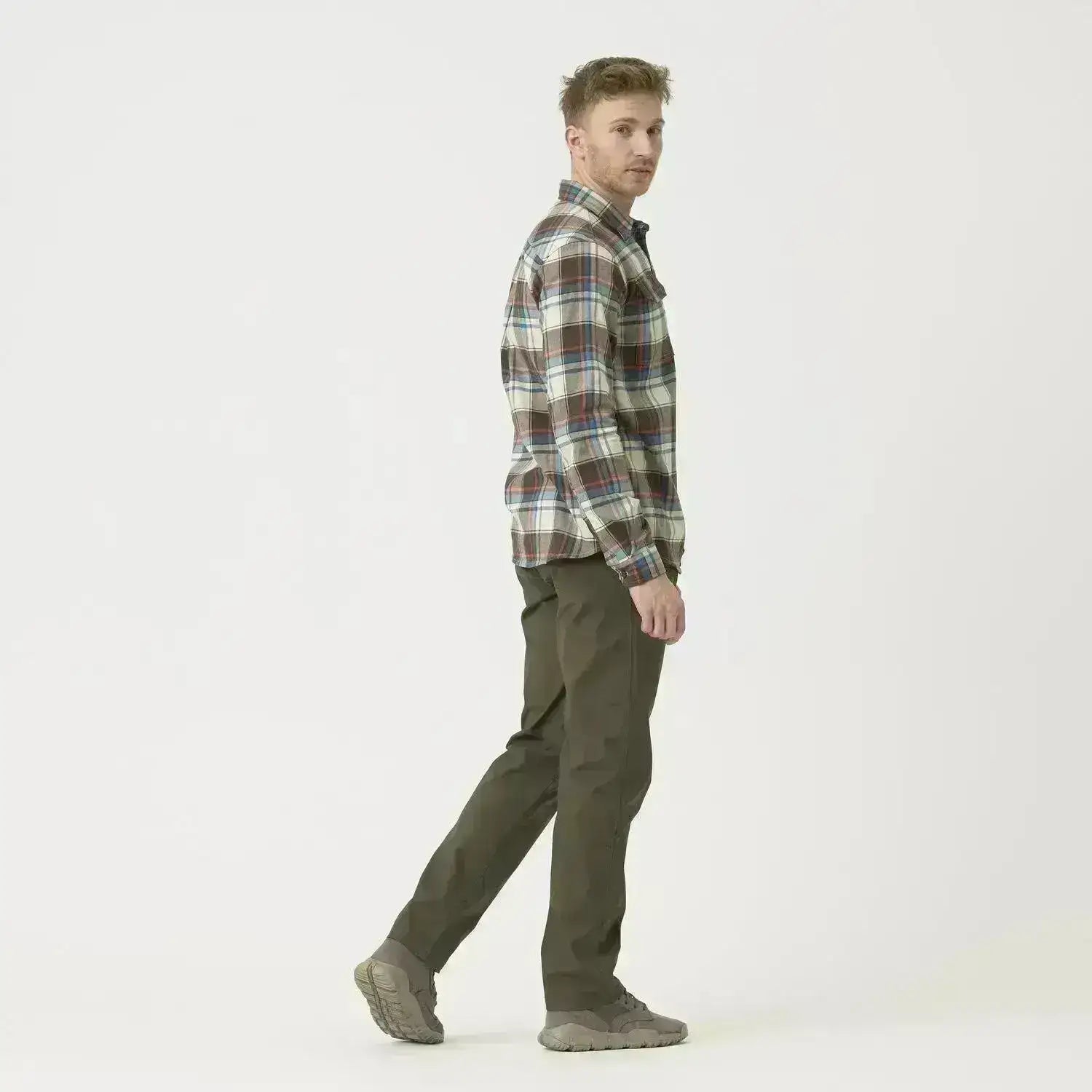 The classic check pattern combines elegance with a low-profile look, perfect for urban settings.