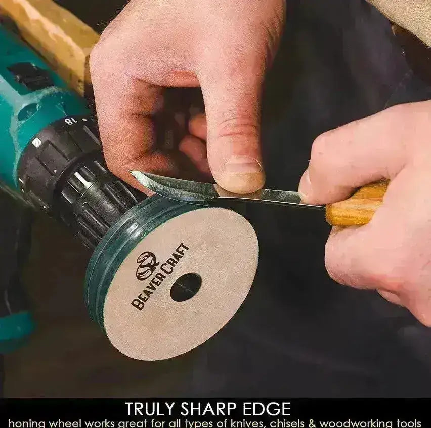 Sharpen all your knives with high-quality leather wheels from Ukraine. Perfect for sharpening kitchen knives, utility knives, wood carving tools and much more!