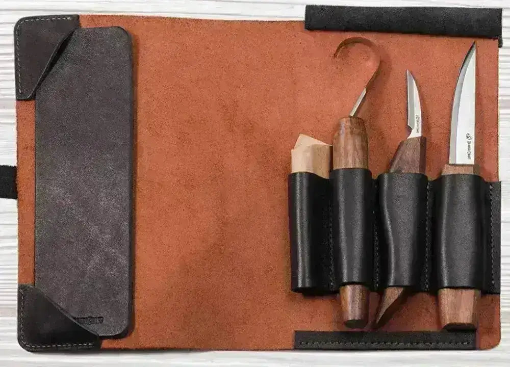 Handmade knives from Ukraine. The S13X set is perfect for those who want good wood carving equipment that allows you to shape and hollow out wood both accurately and efficiently. The curved knife in this carving set from is perfect for hollowing out spoons, bowls and the like, the carving knife that comes with it has a short and precise blade and can be used for most wood carving work and the detail knife is perfect for fine work in creating beautiful motifs and details in the wood.