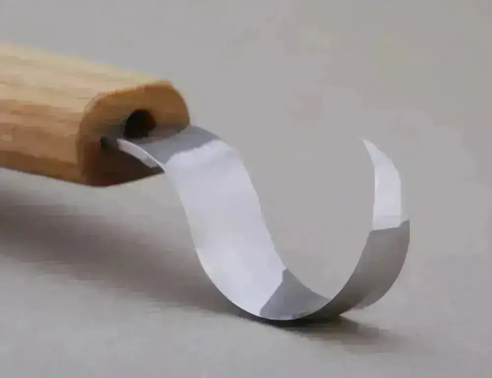 A great and sturdy 25mm curved knife for wood carving projects. Invaluable knife for carving bowls, cups and spoons.