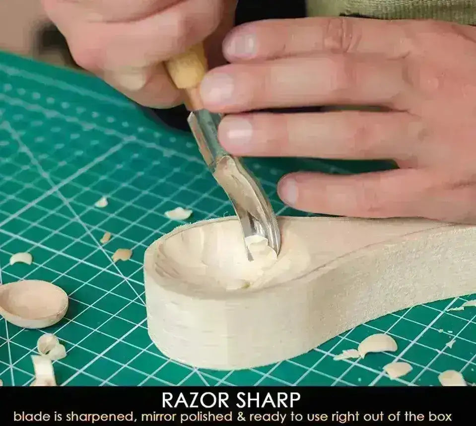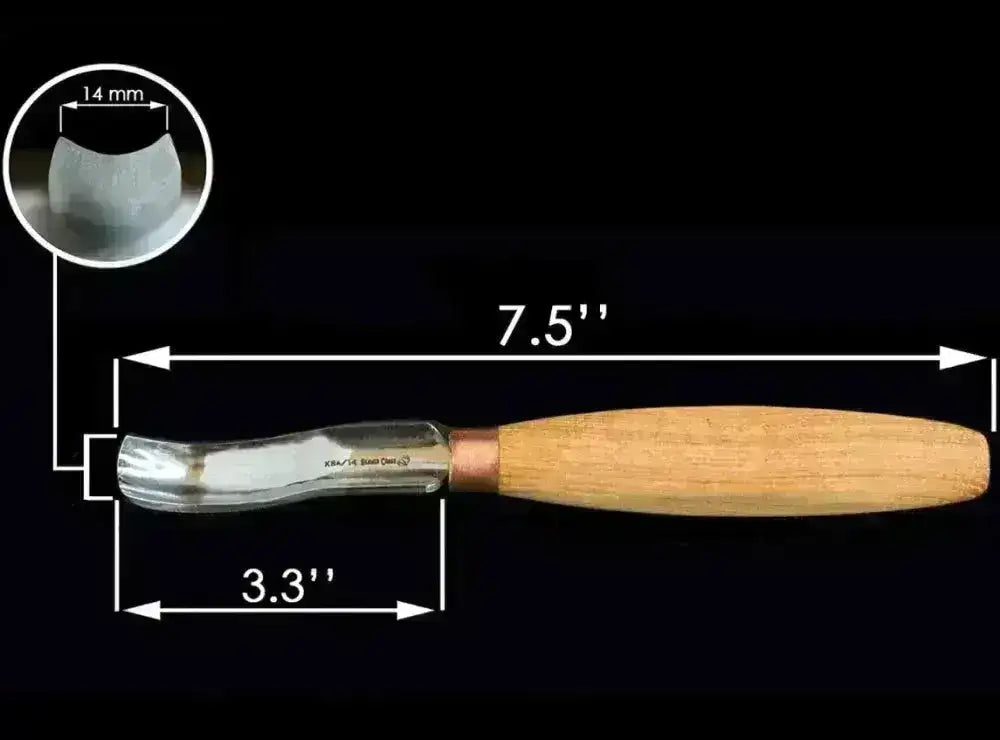 Curved chisel for wood carving, perfect for hollowing out the wood. A "bent chisel" is a great tool for creating round shapes in wood with good results. Invaluable for nailing cups, bowls and ladles.