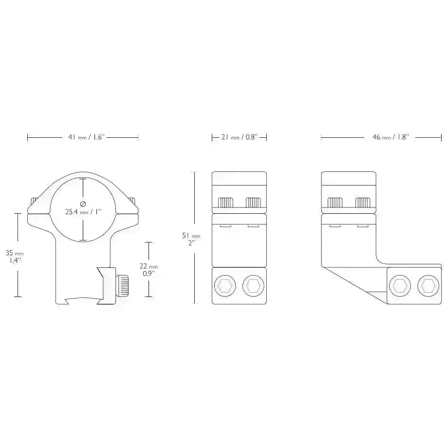 Aluminum mountings with an anodized black surface. The mounting rings have a soft and fine coating on the inside that keeps the optics firmly in place and prevents the optics from being scratched. The mounting rings are high to make room for wider optics and fit well with slightly larger binoculars.