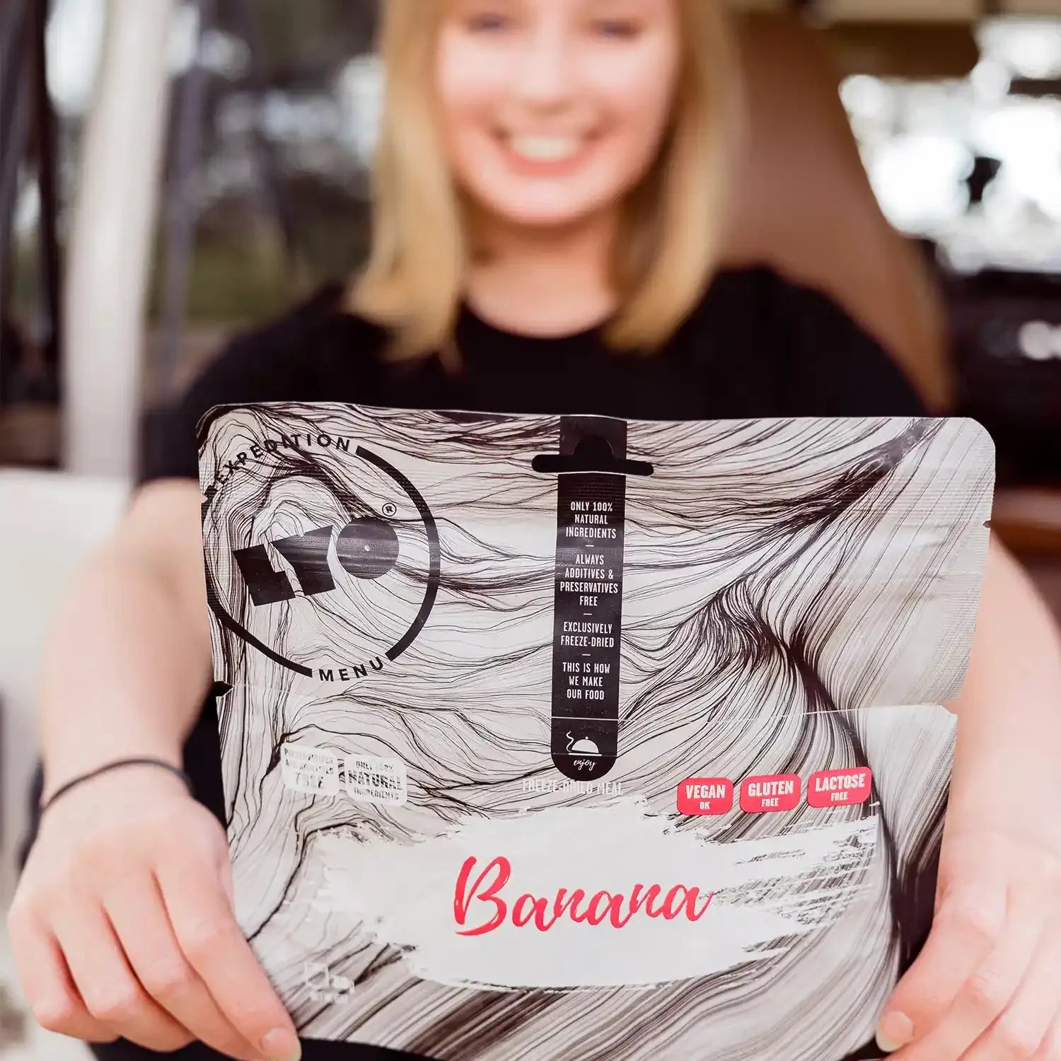These freeze-dried banana slices from LYOFOOD are made from pure banana – no added sugar, no oils, no preservatives. A fantastic alternative to fried or added dried fruit. They taste naturally sweet, provide energy, and stay crispy for a long time. Ideal for hiking, sports, everyday treats, or as a topping in breakfast and dessert.Benefits