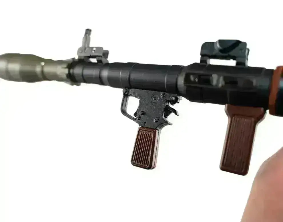 This cool RPG is 1:4 scale and is made of metal and real wood. The warhead (rocket) can be removed and the RPG comes as a kit. Stylish and accurate mini-replica that is a stylish decoration for the TV room or the boys' room!
