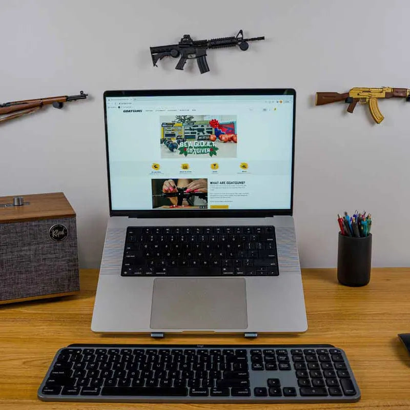 Turn any wall into a sleek and functional display wall for GoatGuns! These wall mounting hooks easily attach with included 3M adhesive pads.