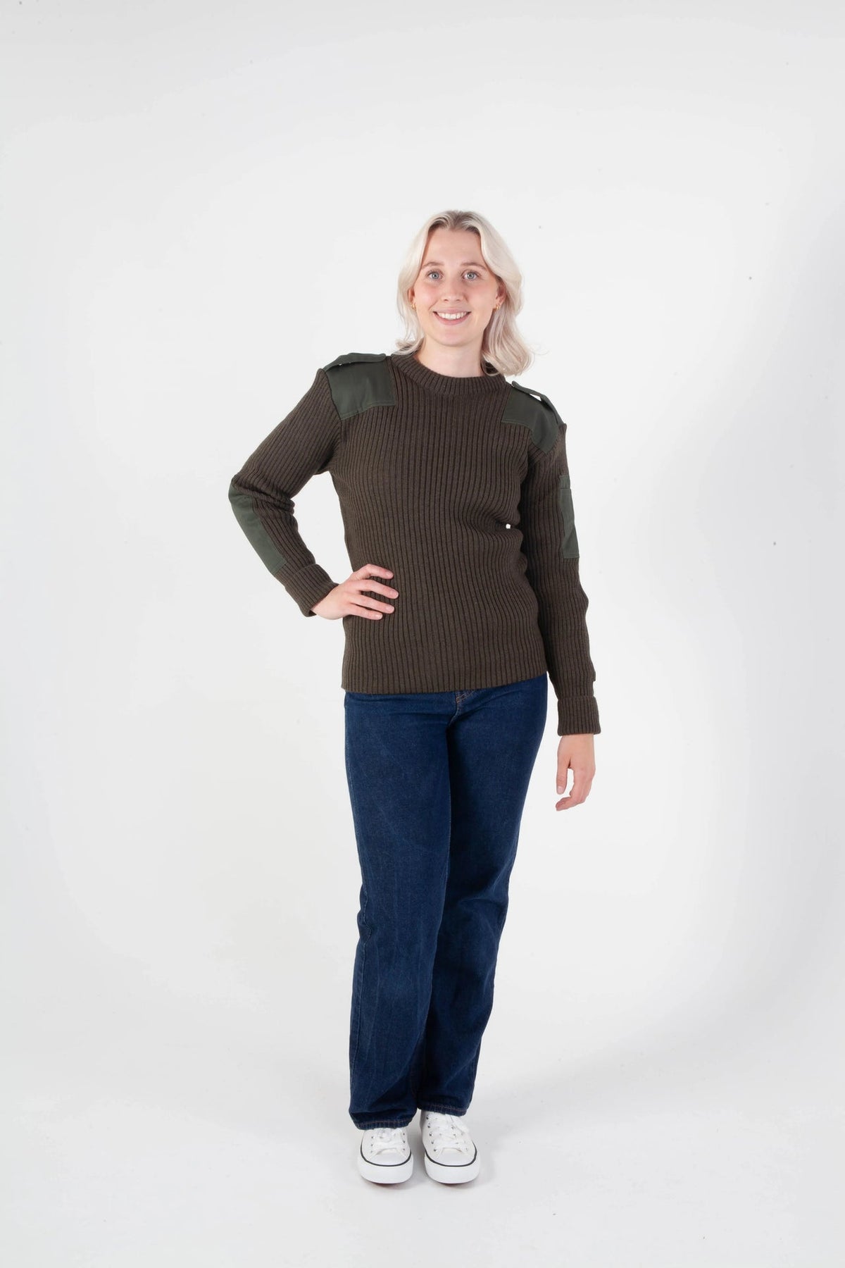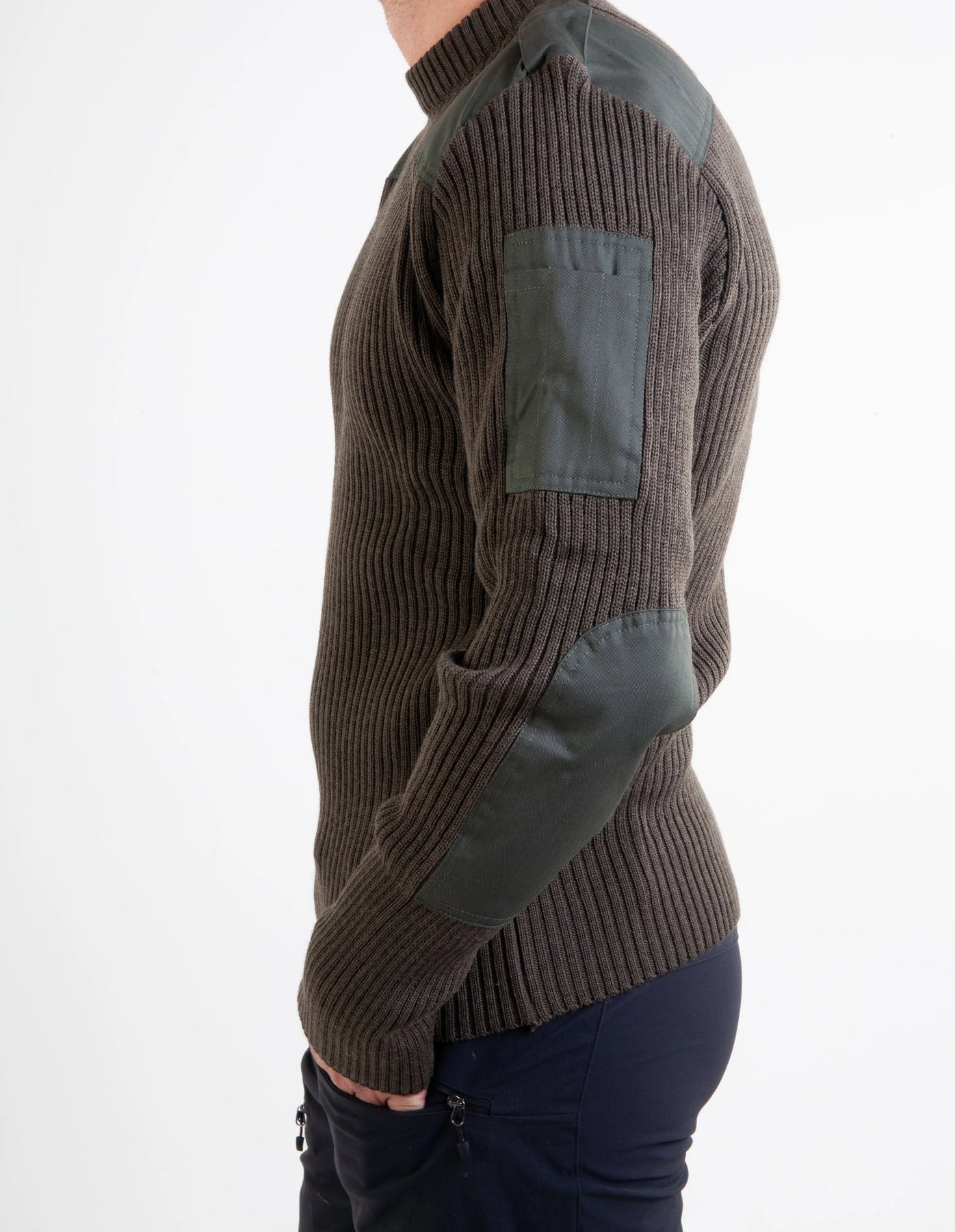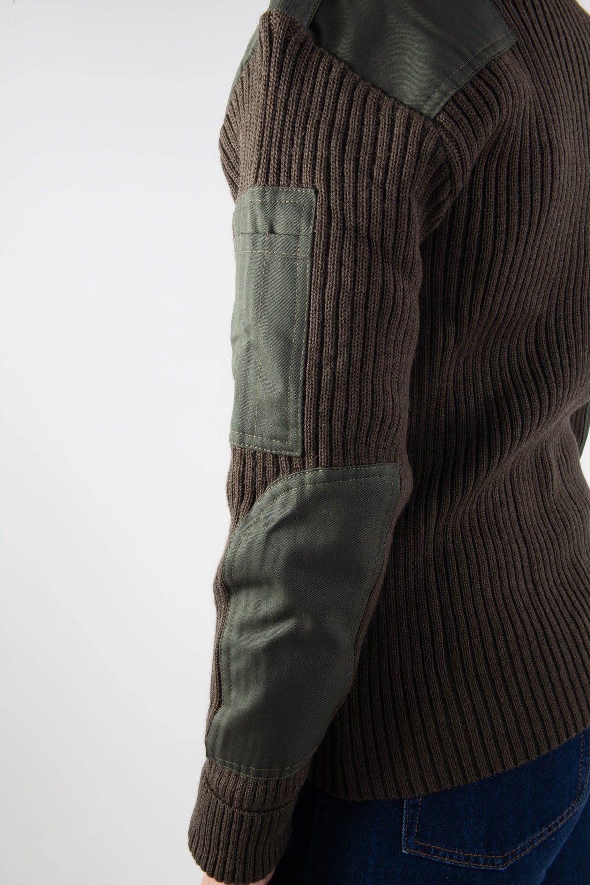 Bråten's green NATO sweater is inspired by the Norwegian military's uniform garments. Knitted in 80% wool and 20% polyester, the sweater offers warmth, comfort, and durability. Shoulders and elbows are reinforced to withstand heavy use – ideal for outdoor activities, hunting, and work.