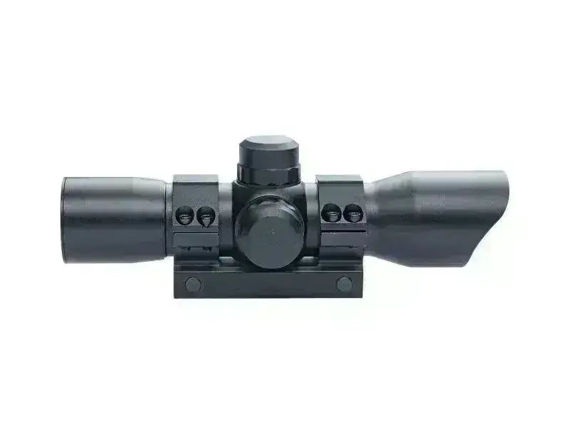 La mira viene con un parasol que reduce el resplandor del sol para que tenga un campo de visión claro en entornos brillantes. Tiene un punto de puntería muy visible de color rojo o verde con intensidad variable. La mira es ajustable tanto para el viento como para la elevación.