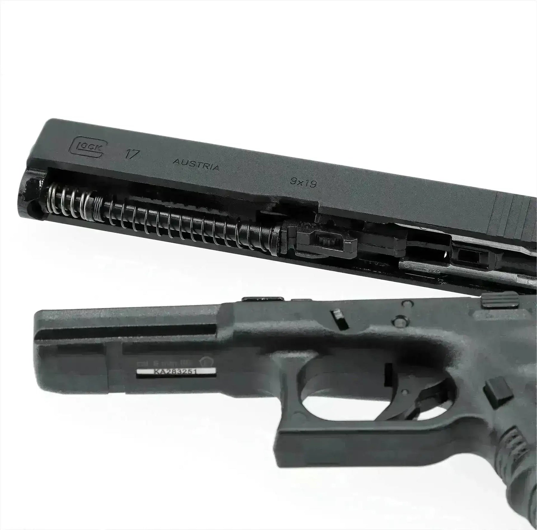 Glock 17 GBB er en lisensiert 6mm gasspistol med metallslide, automatisk trigger-sikring og blowback. Justerbar hop-up gir mulighet for fininnstilling av kulebanen. Vekt: 649g, lengde: 204mm, magasinkapasitet: 23 skudd.