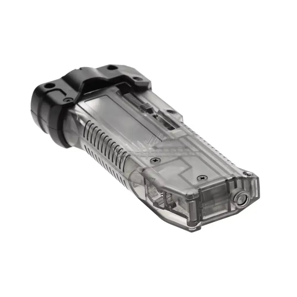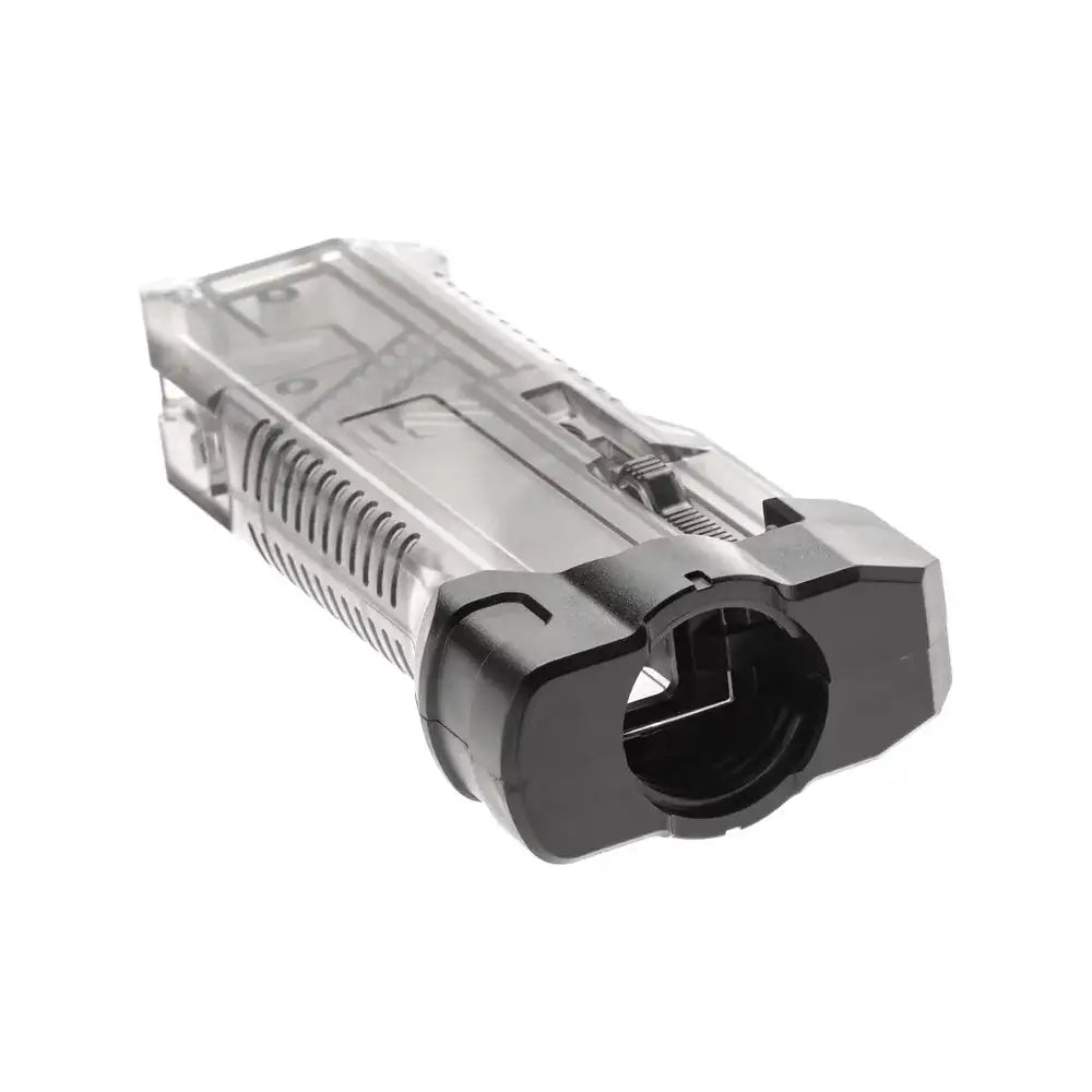 Med sitt kompakte design får du plass til loaderen i en lomme eller pouch, samtidig som den gir rask og pålitelig lading. Når du kobler på en stor BB-flaske via adapteren, har du nesten ubegrenset tilgang på ammunisjon – en stor fordel i spill med høyt tempo.