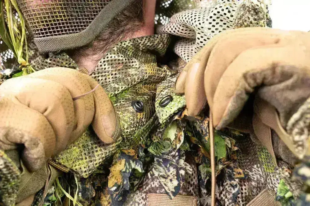 Jakken har 3D blader sydd inn slik at det bryter overflaten og elastiske bånd lar deg feste vegitasjon. Den høye halsen beskytter og kamuflerer godt og jakken passer perfekt med Novritsch sine andre kamuflasjeprodukter, se relaterte produkter lengre ned på siden.