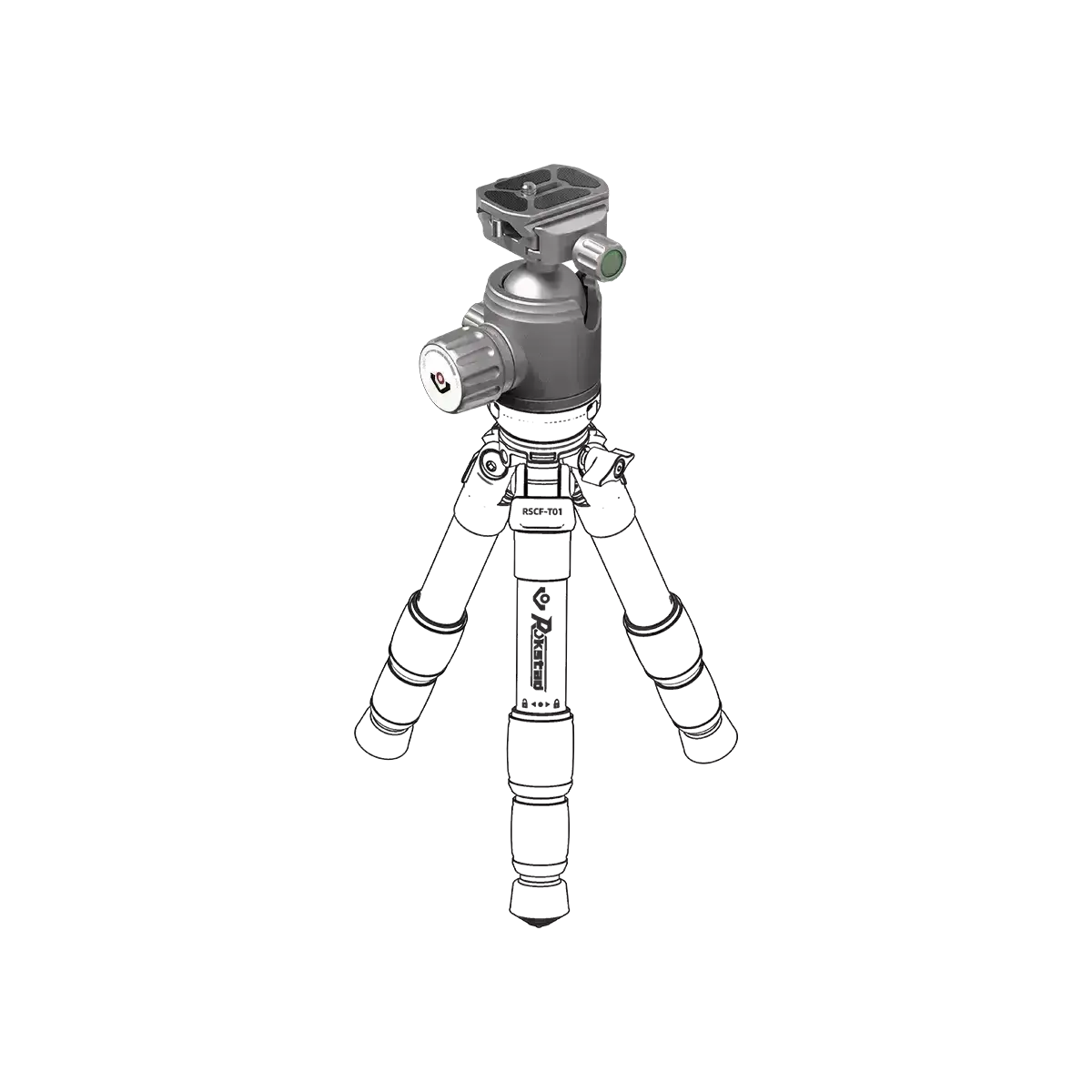 Med dobbel ARCA-type QR-plate og Picatinny-feste er dette kulehodet kompatibelt med ulike optiske enheter. Laget i slitesterk 6061-T6 aluminium og med en maksimal belastning på 20kg, passer det perfekt til RSCF-T01-stativet.