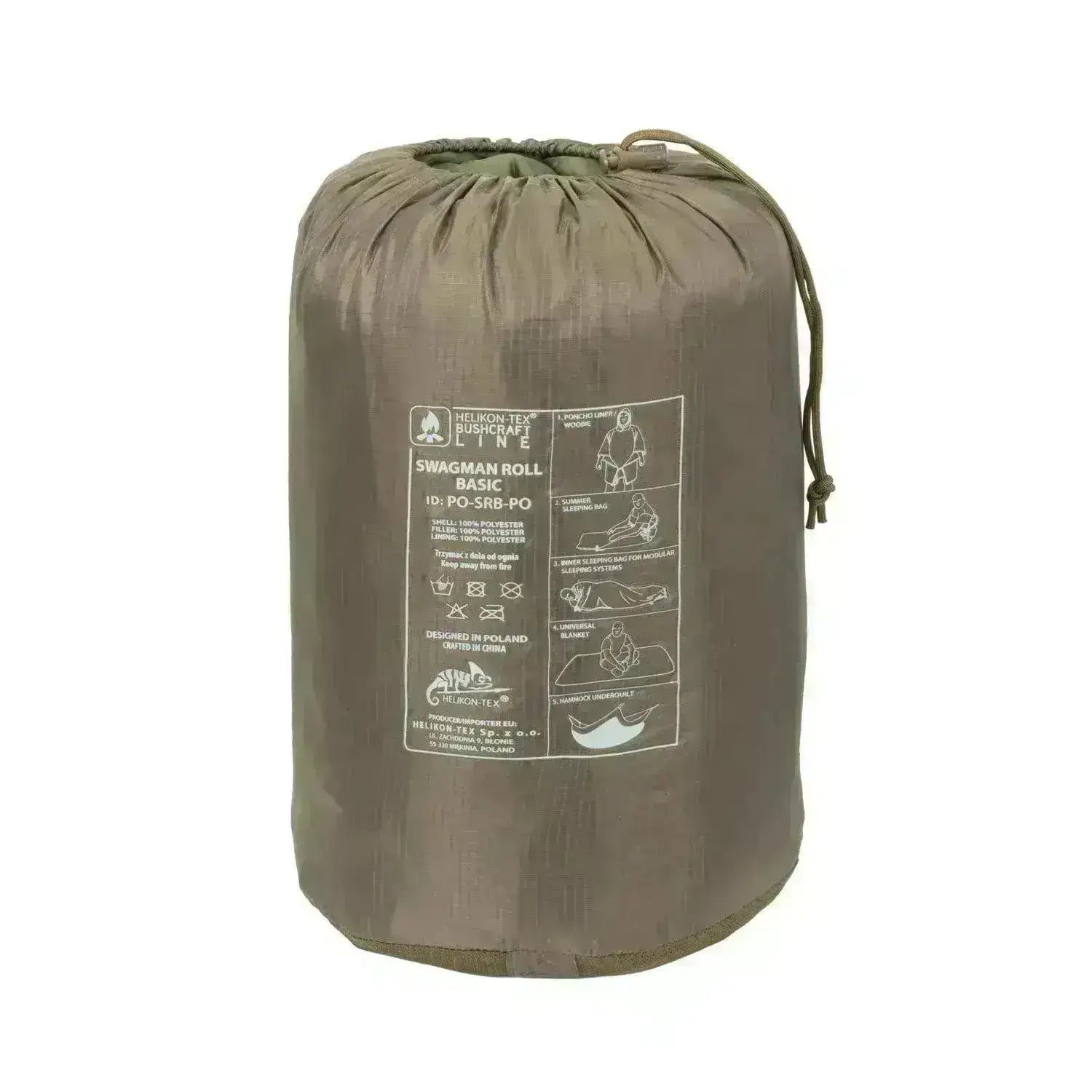 Tras el gran éxito de nuestro Swagman Roll, hemos creado una versión sencilla y más económica. Fabricado de la misma manera que el clásico botín M65, el Swagman Roll Basic te mantendrá abrigado durante las olas de frío repentinas. Gracias a la larga cremallera, se puede transformar fácilmente en un improvisado saco de dormir, mientras que los numerosos puntos de fijación le ayudan a crear un cómodo elemento calefactor adicional para su hamaca. Una capucha ajustable y hebillas en la parte delantera lo convierten en un mono tipo poncho que te protege de la hipotermia.