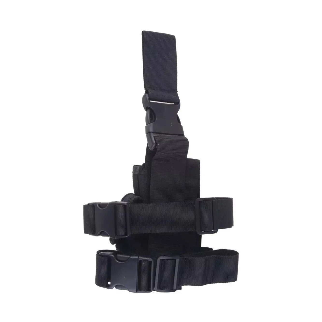 Una funda de muslo que se fija alrededor del muslo y al cinturón. Se adapta a la mayoría de las pistolas y se puede ajustar un poco. El bolsillo para cargador de pistola está integrado en la funda.