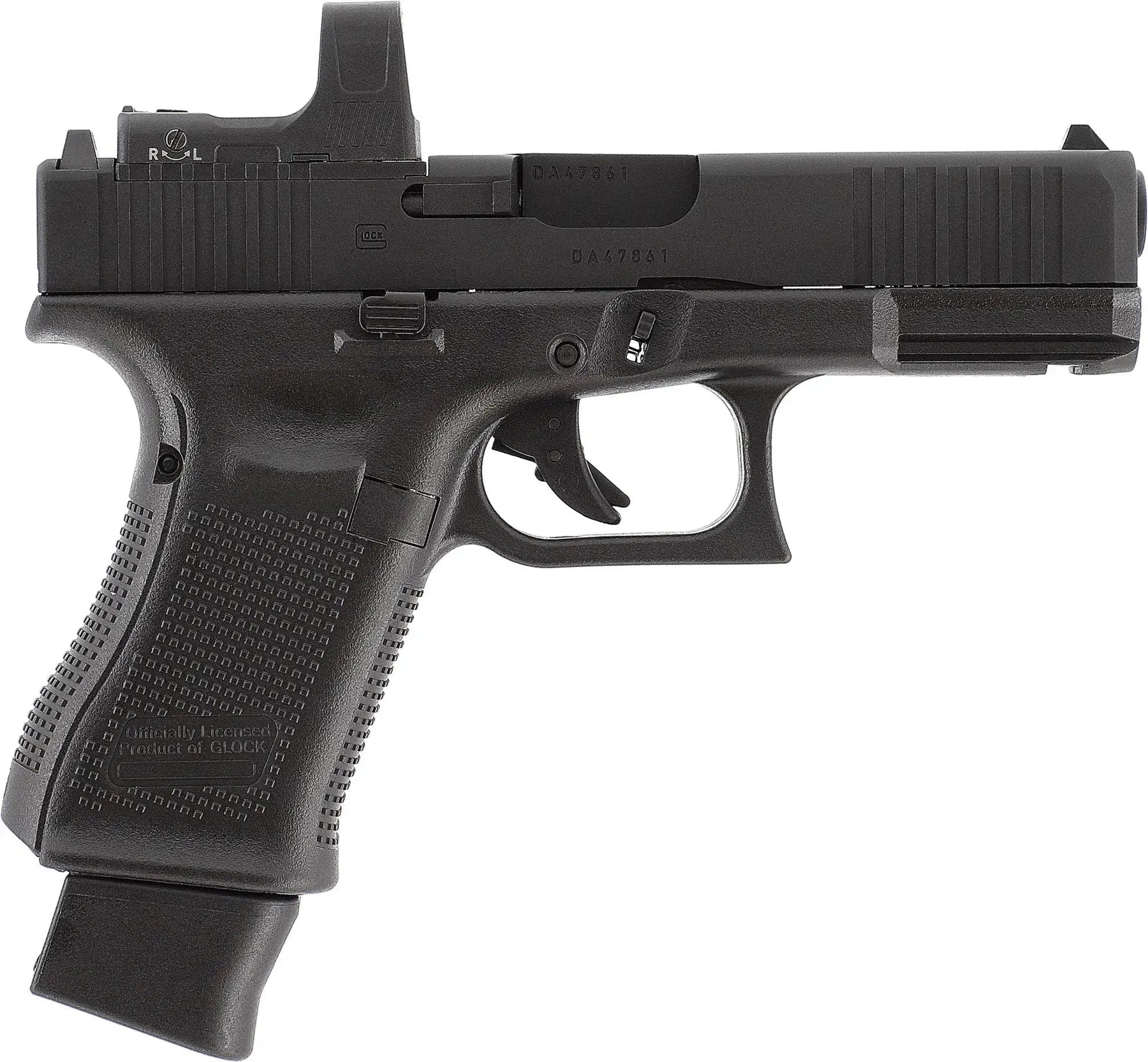 Glock 19 Gen5 MOS er en kompakt CO2-drevet replika med MOS for optikk, justerbar hop-up og Gen5-ergonomi med ambidekstri slide release og vendbar magasinutløser. Magasinkapasitet: 18skudd. Utgangsenergi: <1.0J. Lengde: 175mm. Vekt: 655g.