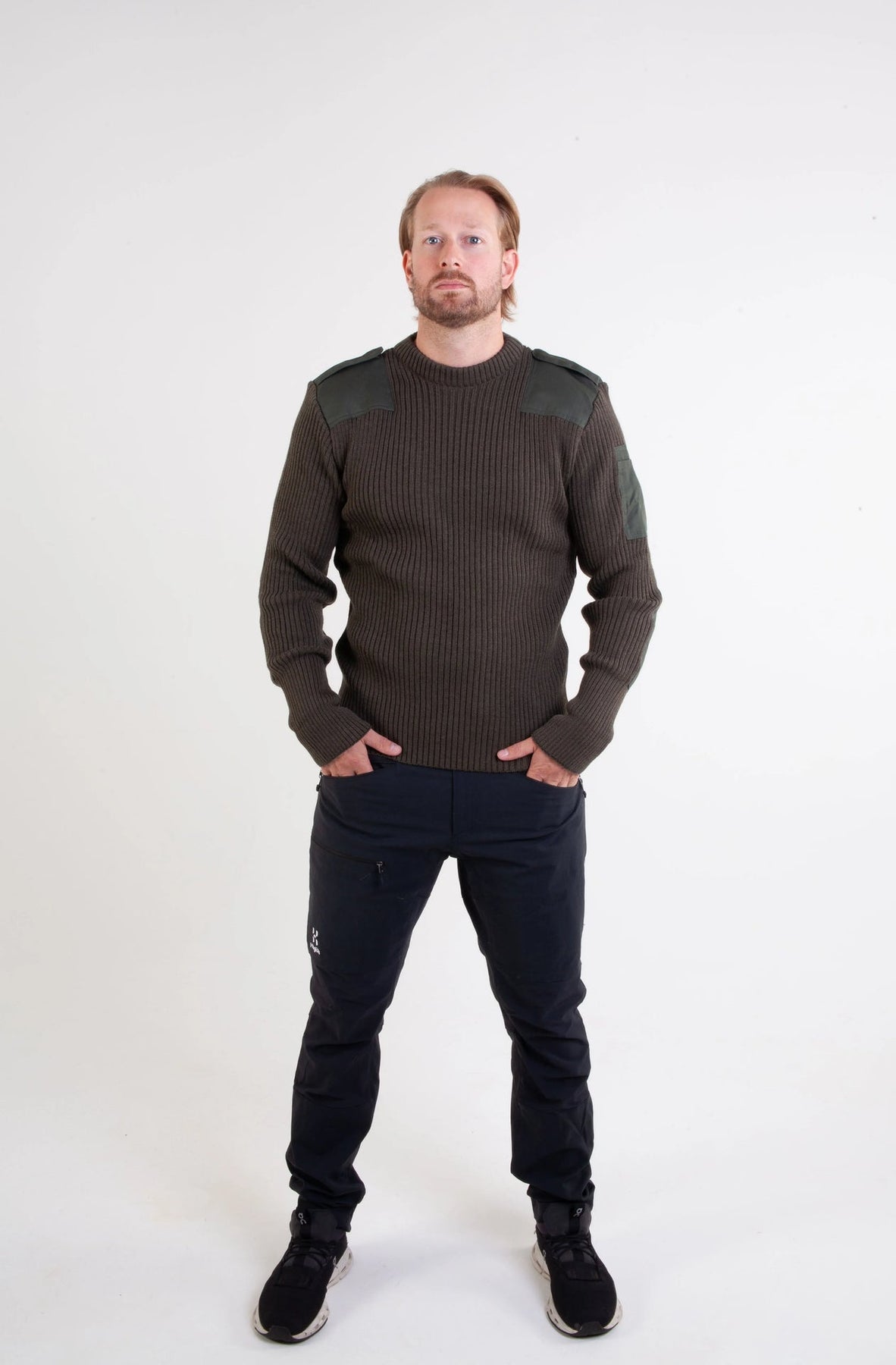 El suéter verde NATO de Bråtens está inspirado en el uniforme de las Fuerzas Armadas Noruegas. Tejido en 80% lana y 20% poliéster, el suéter proporciona calidez, comodidad y durabilidad. Los hombros y los codos están reforzados para soportar un uso intensivo: ideal para exteriores, caza y trabajo.