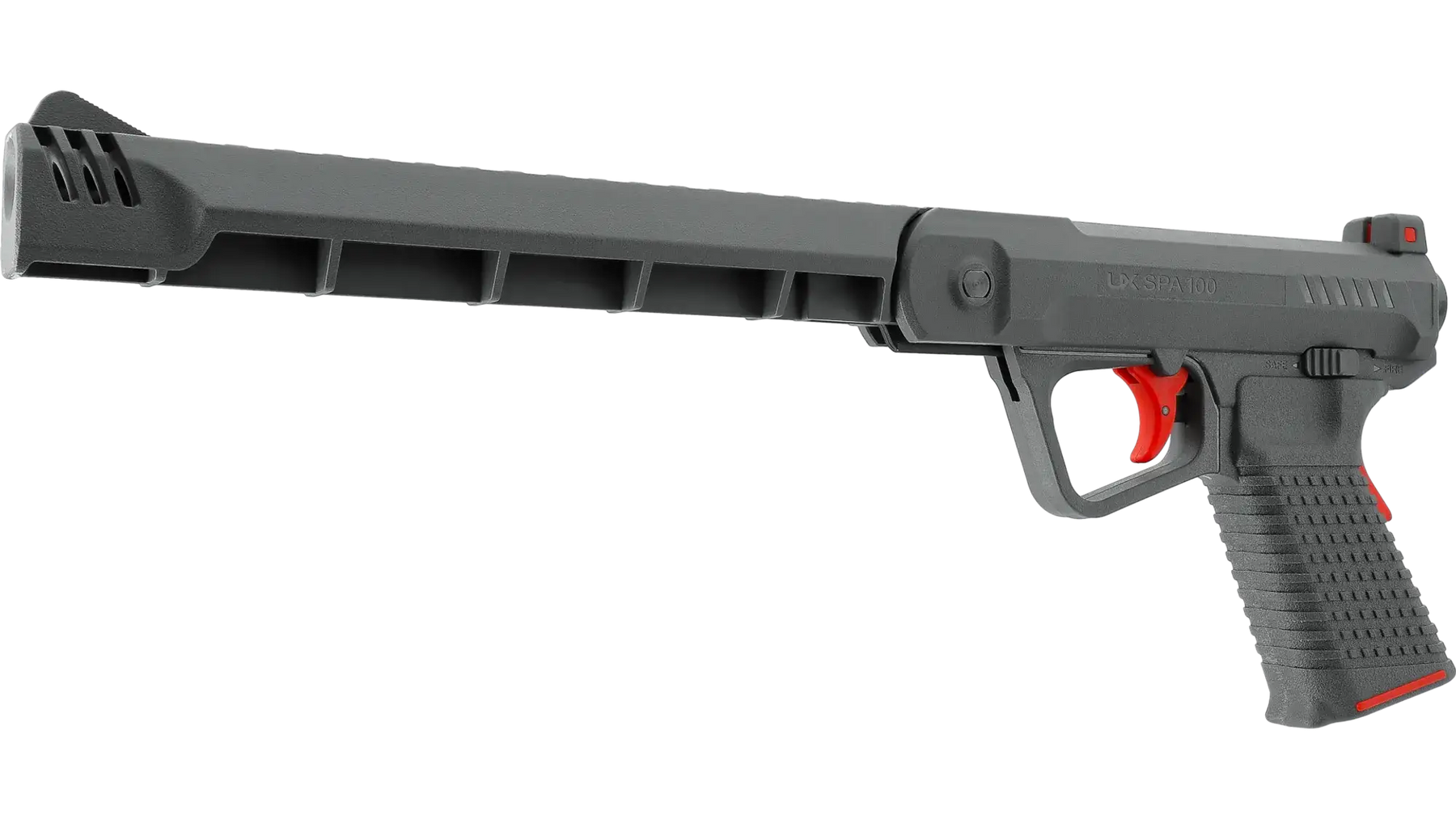 El UX SPA 100 ofrece una entrada asequible al tiro con pistola de aire comprimido. Fácil de usar, casi no requiere mantenimiento, preciso y económico de operar. ¡Todo lo que necesita son balines de 4,5 mm y algunos flashes!