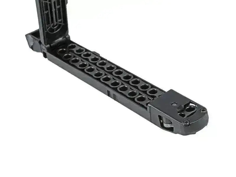 Construida con una corredera de metal sólido y un marco de polímero y con una friolera de 30(!!!) rondas en el cargador, esta es la primera pistola de su tipo. El cargador se alimenta por cinta y el arma es semiautomática, capaz de disparar perdigones de 4,5 mm y BB tan rápido como puedas apretar el gatillo. Con un retroceso realista y alimentado por un cartucho de CO2 de 12 gramos sostenido en la empuñadura, ¡puedes disparar tu munición hasta 430 fps! (dependiendo del peso/composición de la munición). ¡Con tantas balas en el cargador, esta pistola es ideal para horas de diversión!