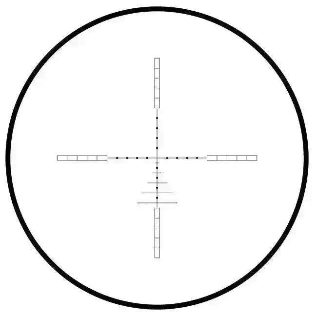 La retícula se basa en AMX Mil-dot y está hecha de vidrio grabado para soportar mayor retroceso. El tipo de retícula es ideal para rifles de aire comprimido, ya que estos suelen tener una trayectoria de bala más curva. (Ver imagen para la retícula)