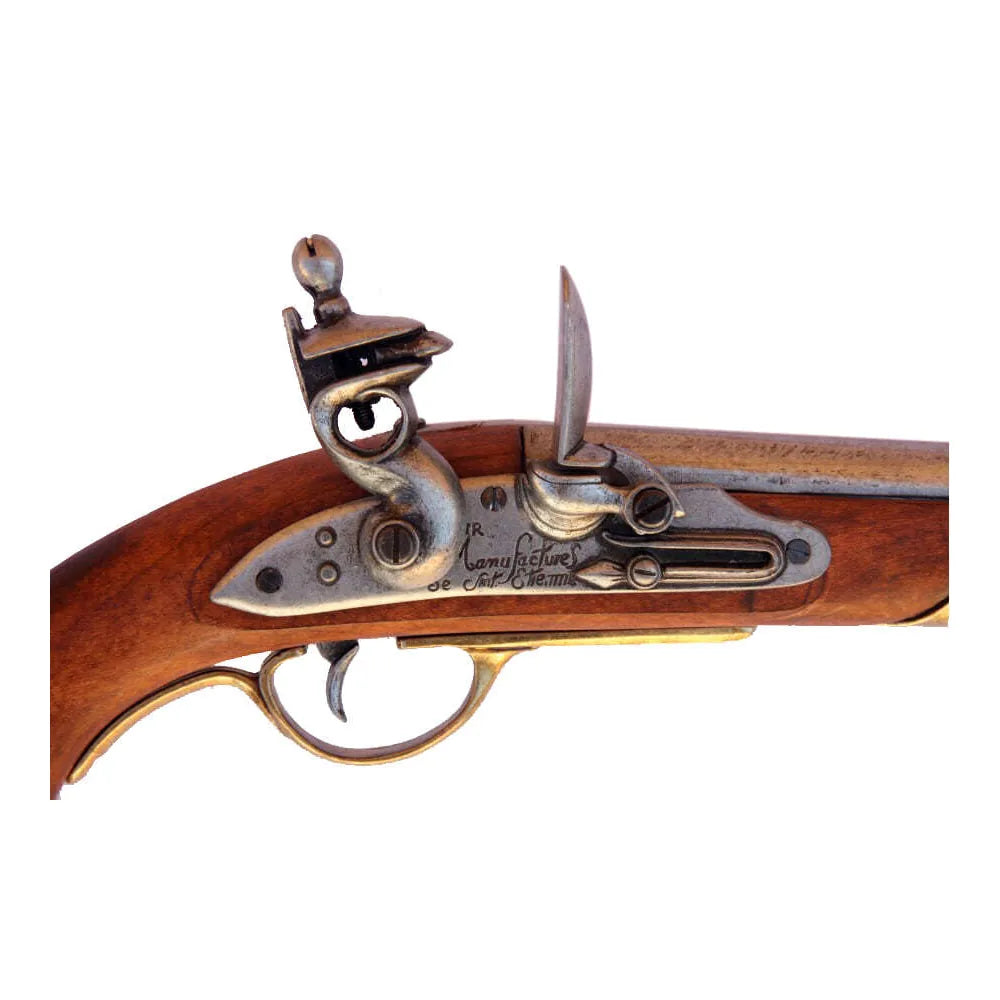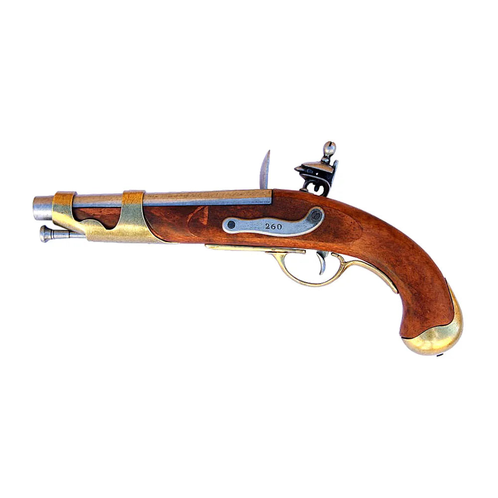 Denne dekorative replikaen fra Denix er en tro gjengivelse av den franske kavaleripistolen AN IX, brukt under Napoleonskrigene tidlig på 1800-tallet. Pistolen representerer fransk militær håndverk fra en periode der kavaleri spilte en avgjørende rolle på slagmarken.