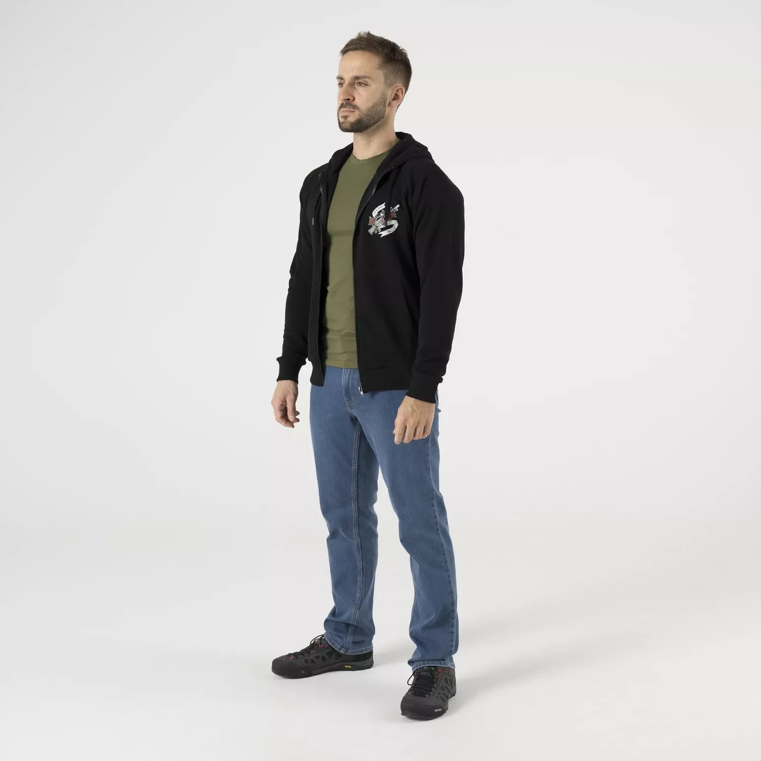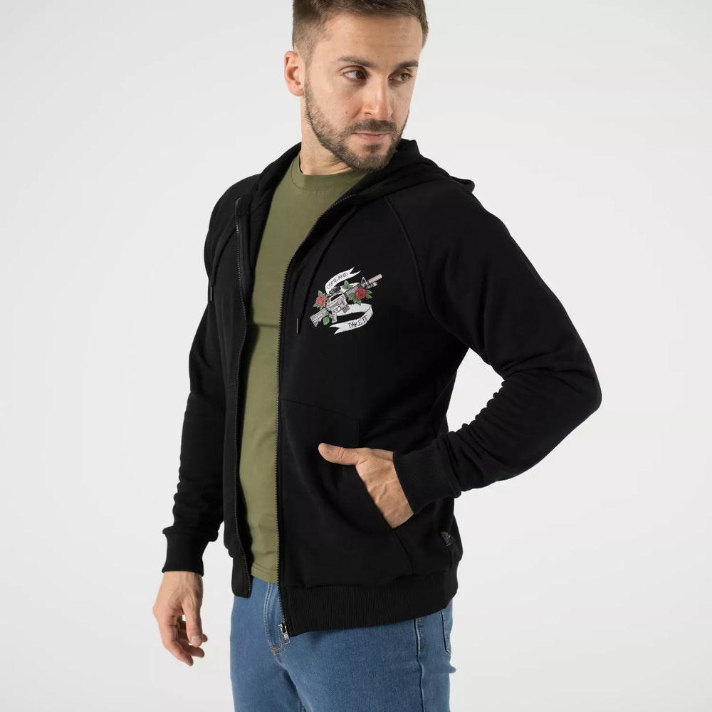 Et godt alternativ for deg som vil ha en lett og praktisk hettegenser med hel glidelås og et diskret, historisk inspirert trykk.