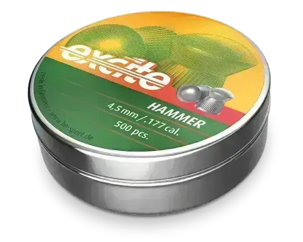 Perfect plinker ammunition that has a rounded (domed) tip that cuts nicely through the blip and has a straight bullet trajectory. Recommended maximum distance is 30m.