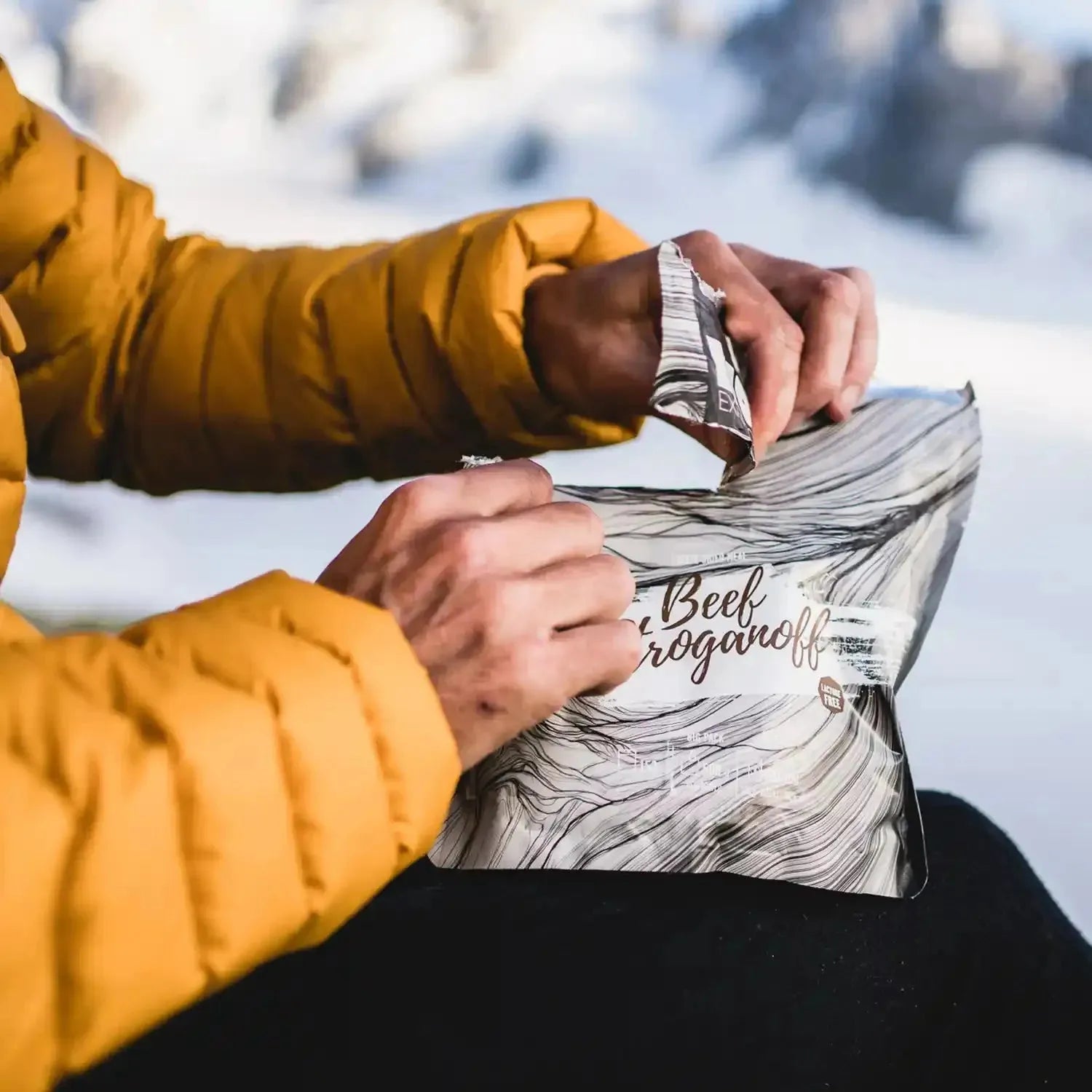 LYOFOOD Beef Stroganoff offers you the taste of a real creamy beef stew on the go. The dish combines tender beef pieces, rice, mushrooms, and a rich paprika sauce – made with 100% natural ingredients without artificial additives. Perfect for those who need a larger, more substantial portion after long days in the mountains, hunting, or on expeditions. Freeze-dried for low weight and long shelf life.