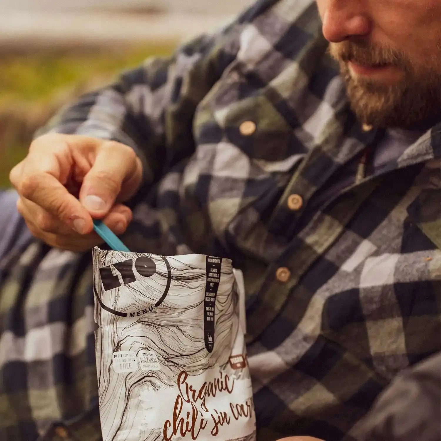 LYOFOOD Chili sin carne delivers authentic Mexican flavor with beans, rice, bell peppers, and corn in a spicy tomato sauce. A perfect freeze-dried dinner for adventurers looking for a vegetarian option packed with energy. 100% natural ingredients, no preservatives, low weight, and long shelf life.