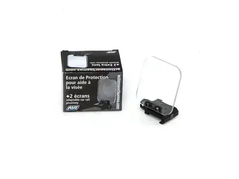 This clear, transparent acrylic lens is mounted in front of the optics as a protective shield against flying BB bullets and other objects. The mount is quickly mounted on any 21mm rail without having to use tools. For storage, the lens can be folded down so that it takes up minimal space during transport.