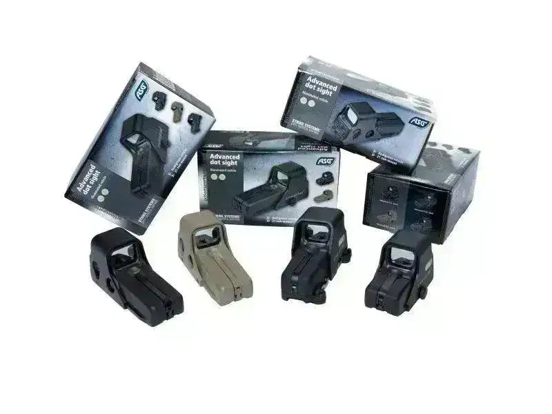 This holo sight from Strike Systems offers a choice of red or green dot. It is powered by 2 AAA batteries (not included).